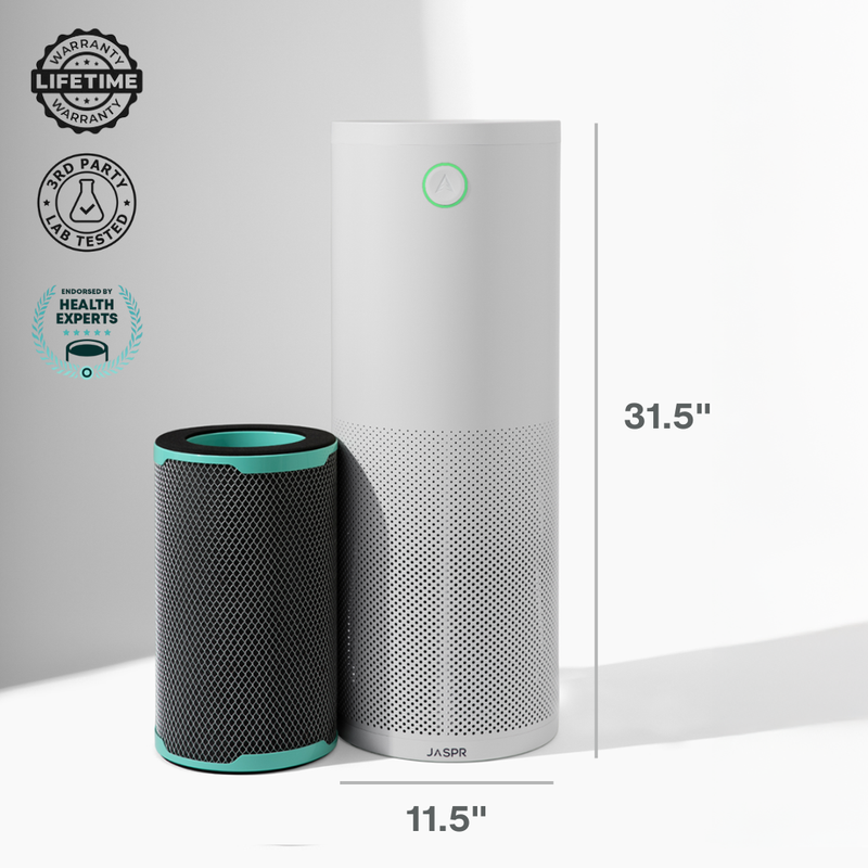 Unlike typical air purifiers, JASPR was designed using hospital-grade air scrubbing technology—the same level of filtration used in medical and cleanroom environments.